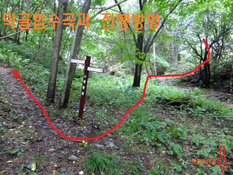 14:50 막골합수곡(이정표) 이동거리5.98km, 소요시간3시간35분, 해발857m