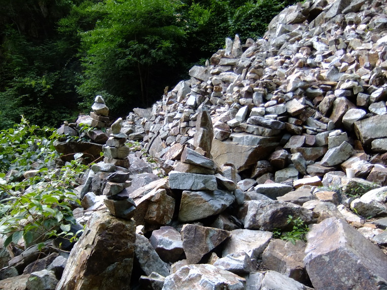 <작은 선바위를 내려서면 너덜지대가 있는데 이곳에서도 돌을 쌓으며 소원을 빈다고 합니다.>