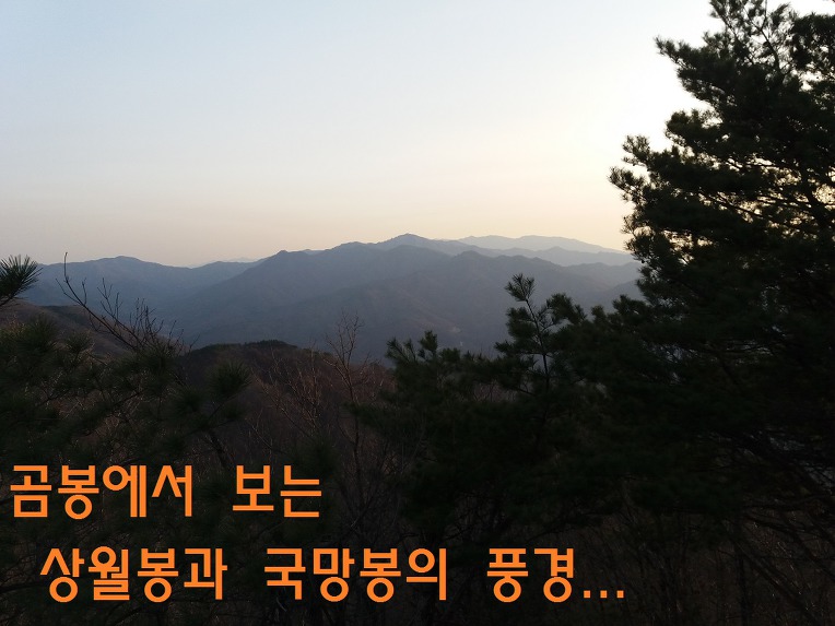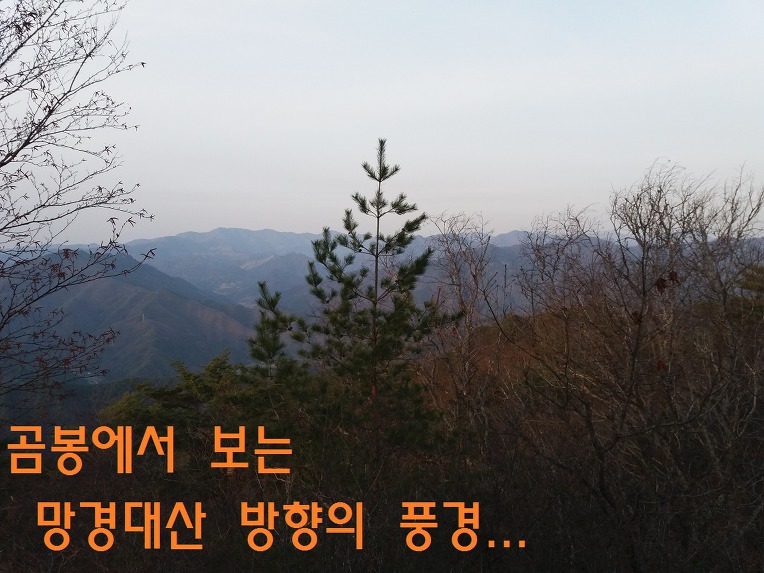 곰봉3거리를 출발해 서서히 고도를 높이며 잡목 너머로 좌측으로는 마대산이 보이고, 우측으로는 시루봉에서 어래산으로 이어지는 능선이 식어가는 태양빛에 외롭게 보인다.