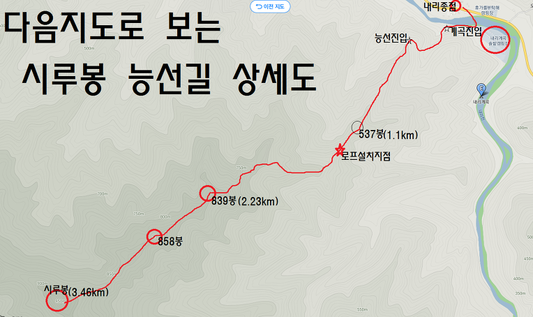 <내리에서 시루봉까지의 산행궤적입니다.>