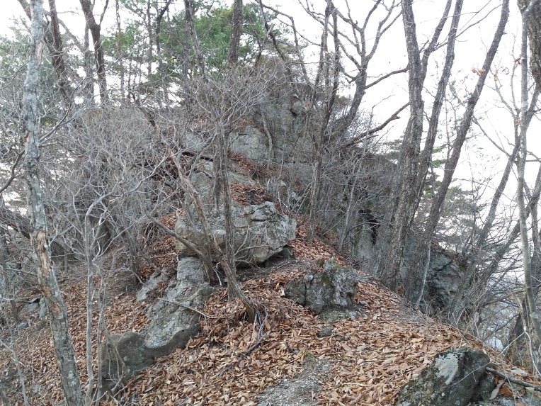 우회길을 찾아보지만 보이지 않아 암릉을 기어오르니 2차 암릉이 나오는데 이곳 능선길은 표지기가 귀해 길 찾는데도 세심한 주의를 기울여야 했다.
