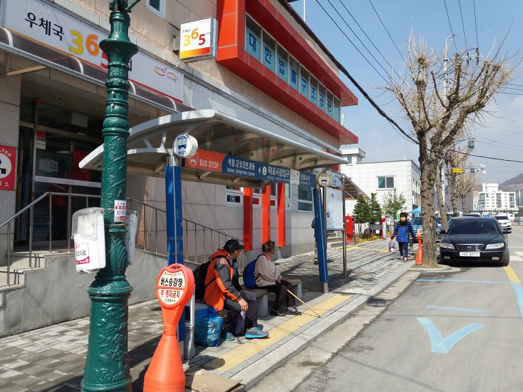 우체국 앞 덕포시장 정류장에서 10시36분에 탄 버스는 고씨동굴 앞을 지나 내리에 도착한 시간이 11시10분입니다.