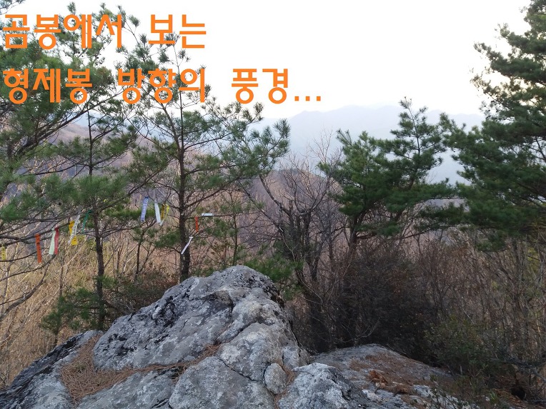 주변의 경치도 좋아 사진 몇 장을 찍을 만도 했지만 얼마나 급했으면 사진도 찍을 시간이 없어 연속되는 암릉지대를 지나 소나무와 암봉이 최고의 비경을 만든 곰봉에 올라섰는데 곰봉3거리에서 25분이 걸렸다.