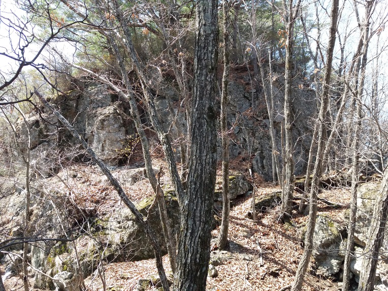 <750봉을 내려선 지점 석굴이 있는 암릉의 모습입니다.>