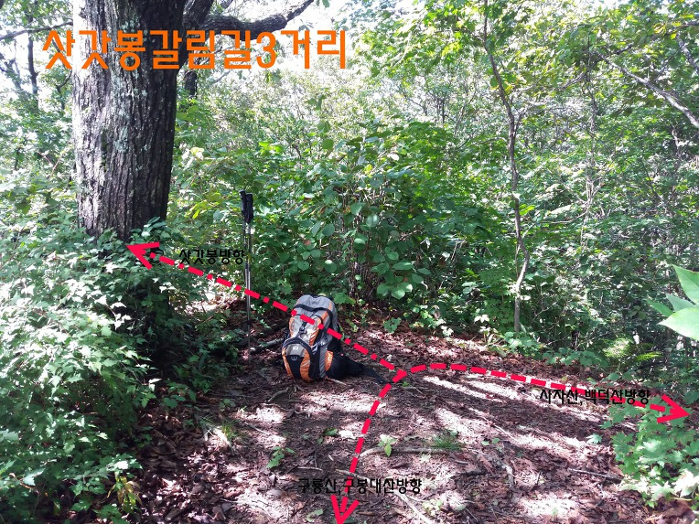 -삿갓봉에서 사재산으로 이어지는 능선은 길 찾기가 아주 애매한데, ①정상에서 올라섰던 방향으로 내려서 우측으로 아주 희미한 길을 따라 길을 찾아야하며, ②직진방향으로 내려서서 좌측능선으로 이동하는 방법이 있다.