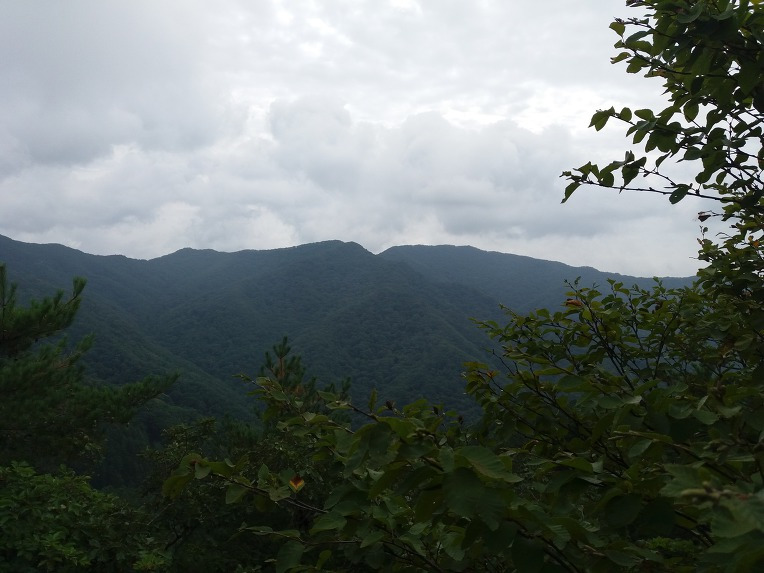 첫 번째 무명봉을 지나고 특별한 지형지물이 없는 능선을 따라 이동하는데 산행 후 그쳤던 비가 다시 내리기 시작하였는데 오래가지 않아 그쳤으니 다행 중 또 다행이었다.