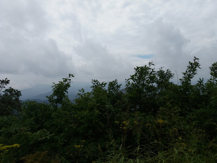 능선 좌우는 아직도 구름에 쌓여 아래를 볼 수 없으며 시계 100여m의 능선길만 따라갈 수 있는 정도다.