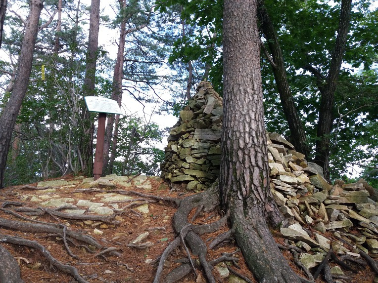 6봉을 지나면 능선은 암릉이지만 그리 가팔치 않게 오름을 하다가 소나무 숲에 돌탑을 쌓은 봉우리로 중간에 구봉대산 제7봉인 쇠봉(衰峰) 안내판을 만난다.
