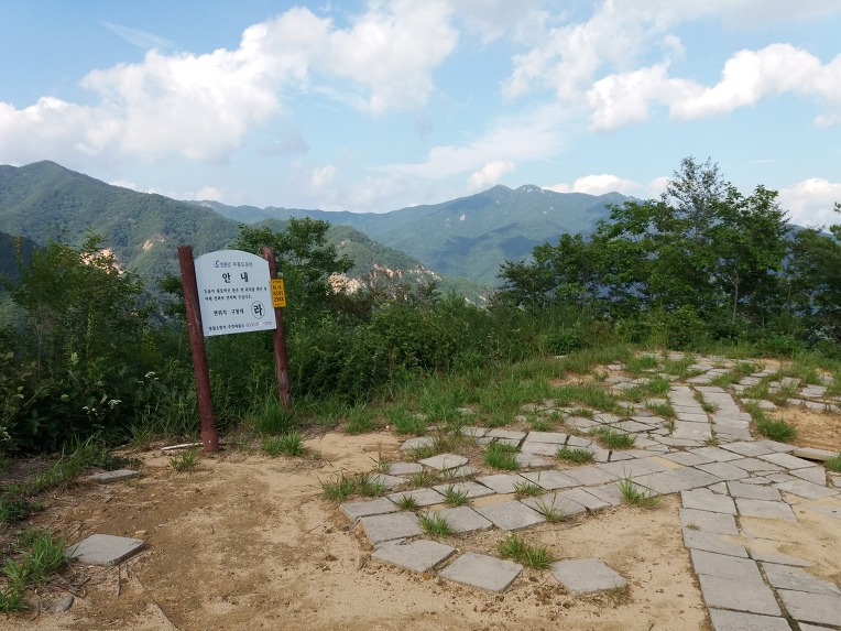 물 한 모금으로 갈증을 해소하고 인증사진을 찍고, 조망은 잡목으로 시원스럽지 못하고, 10분을 머물다 시간을 확인하니 오후5시가 지났다.