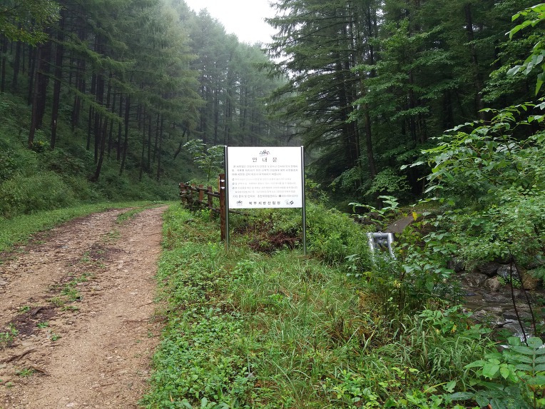 비포장으로 오르는 길 우측으로는 계곡으로 며칠 동안 비가 내려서인지 계곡 물 흐르는 소리가 요란했으며 택시에서 내려 약300~400m 오르니 사방댐이 나오고 포장도로가 나온다.