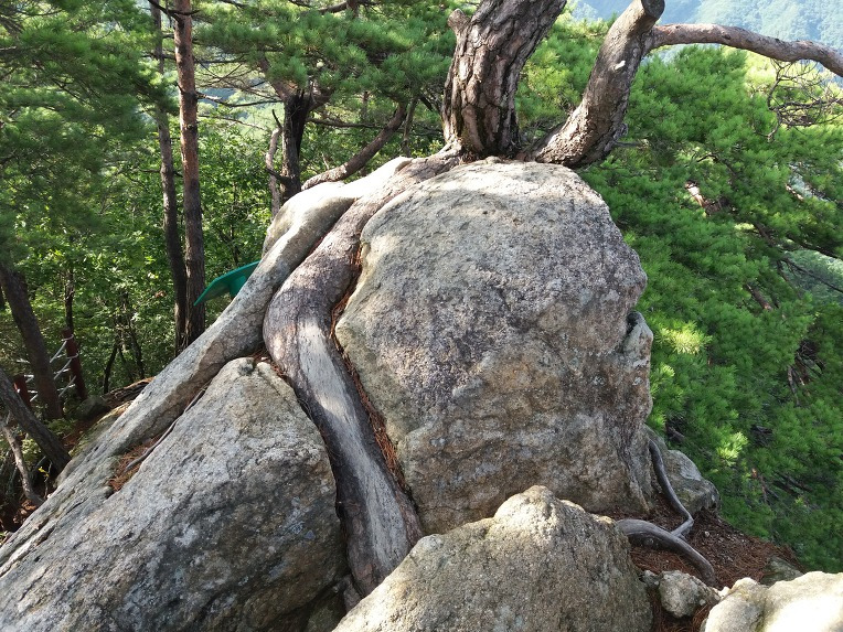 초기에는 바위는 자기의 모습을 변형시키기를 거부했을 것이고, 소나무는 생명을 이어가기위해 딴딴한 바위 작은 틈바구니에 뿌리를 내리고 인고의 세월을 보내며 이제는 바위와 소나무가 서로를 받아들이고 공생하고 있다.