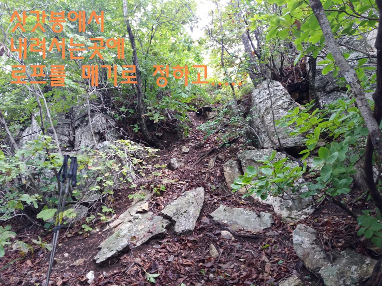 -오두치에서 약1km지점인 780봉에서 정상으로 오르지 않고 좌측으로 우회해도 되며 이후 희미하고 거친 암릉길이 지속되며 삿갓봉500~600m전 아주 가파른 능선을 올라 우측으로 이어가야 한다.