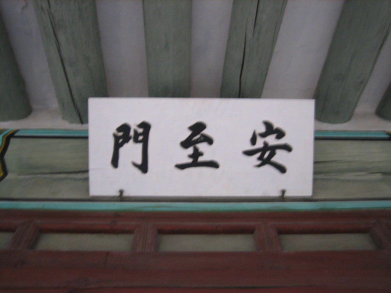 강녕전 남쪽 행각에 있는 향오문 동편에 행각 옆에 있는 문으로 경복궁 중건 때 만들어졌으며 안지(安至)란 『평안함이 이르다』는 뜻입니다.
